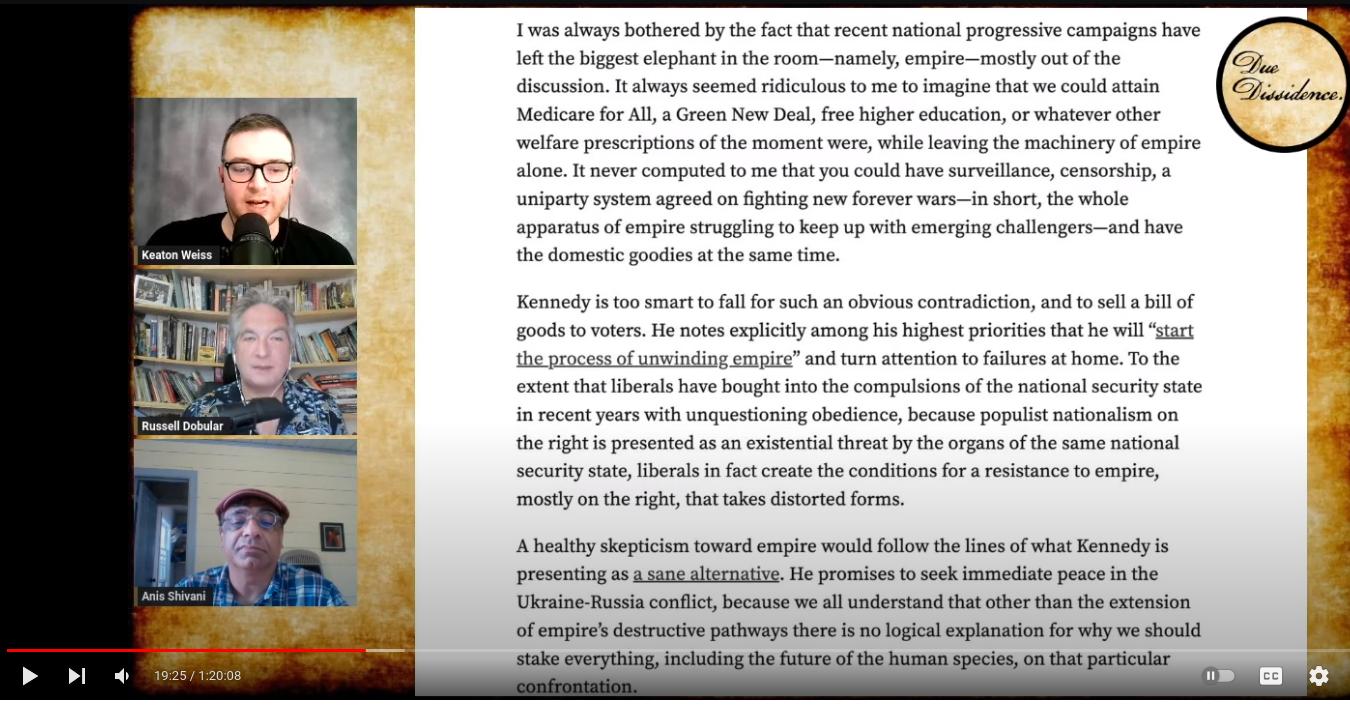 In this second video, the DD guys talk with super-bright RFK supporter Anis Shivani, and everyone agrees that Robert Jr. is the last best hope in post-Bernie world.