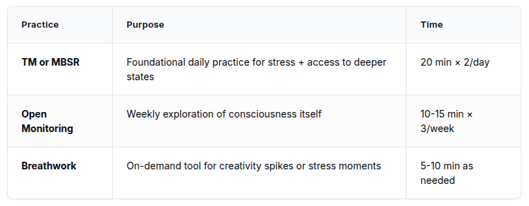 Given your profile (King Shaman, builder, non-religious, interested in consciousness science and creativity), I’d suggest a hybrid approach: